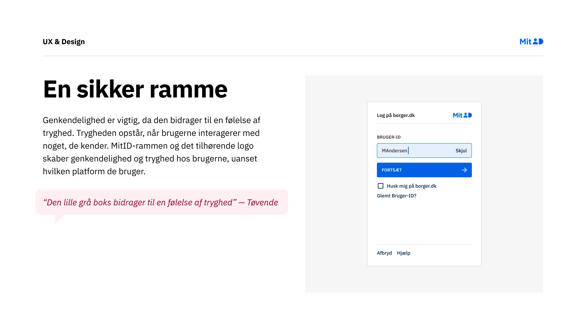 MitID now stands as a new standard for secure digital identity in Denmark. The experience is intuitive, accessible, and welcoming for all users, and its cohesive look and feel have become a recognisable symbol of safety.