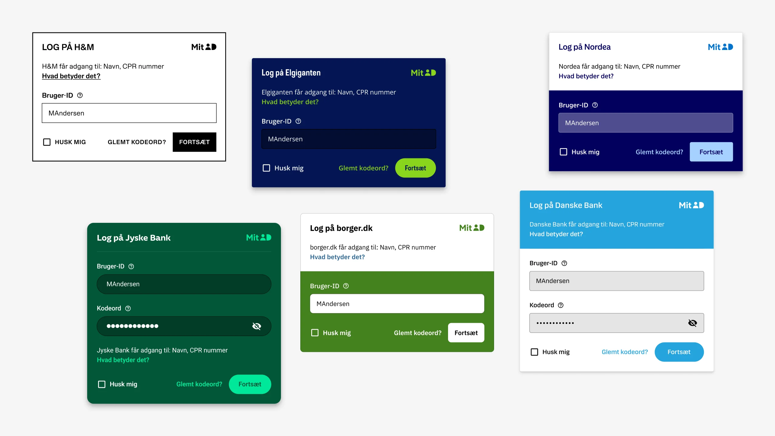 Boards showcasing the MitID design language and system, created specifically for the solution